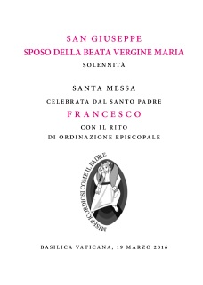 En tal señalado día, se celebró Santa Misa para la Consagración Episcopal (como Obispo titular de Luperciana) de Miguel Ángel Ayuso Guixot (M.C.C.I., Secretario del Consejo Pontificio para el Diálogo Interreligioso) y Peter Bryan Wells (como Arzobispo titular de Marcianopolis, y nuncio apostólico en Sudáfrica, Botswana, Lesotho y Namibia), durante la solemnidad de San José y tercer aniversario del Papa Francisco, como Sumo Pontífice, en la Basílica de San Pedro basílica, Ciudad del Vaticano.